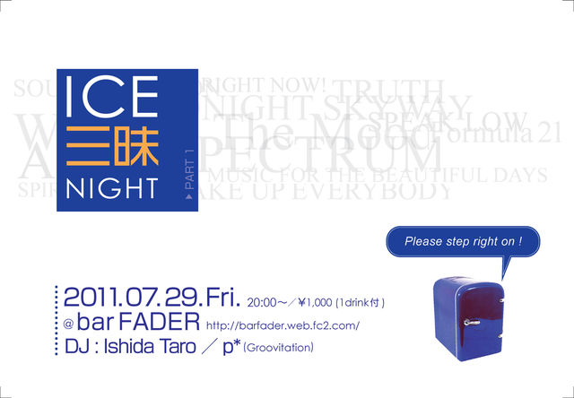 当時、Barフェーダーのマスターとの雑談から企画された『ICE三昧NIGHT』というDJイベント。そのフライヤーが完成したので納品&一杯。Instagramには投稿していませんでしたが、mixiに画像が残っていたので貼っておきます。